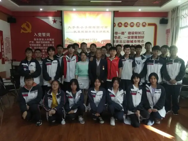 四川行知教育网讯:4月29日,四川天府新区职业学校开展了“大手牵小手 “面对面”学生微党课活动。活动有幸邀请到88岁高龄的参加过抗美援朝的老党员——刘家声老师。