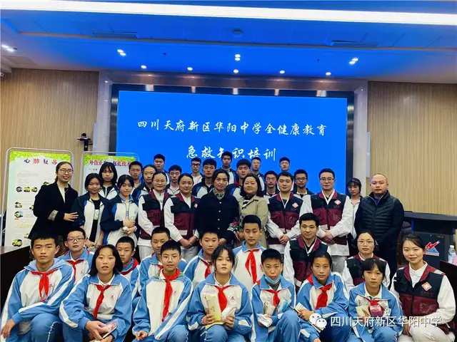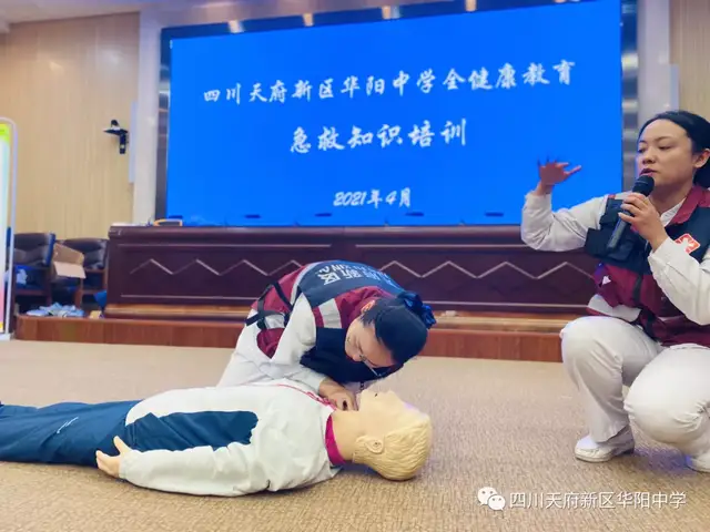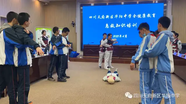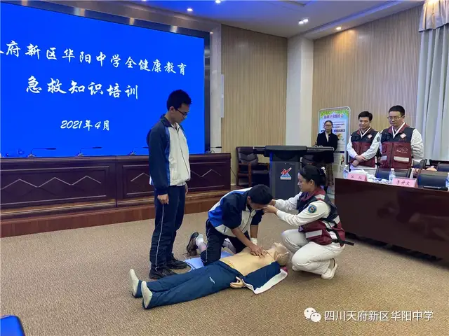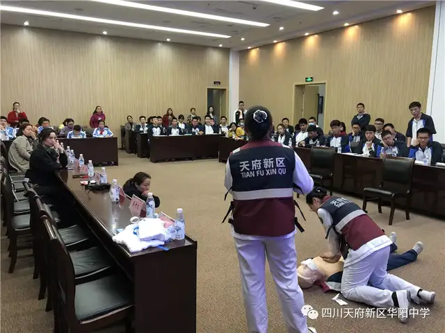 四川行知教育网讯:为增强学生在突发事件中的急救意识和自救互救能力,促进广大中小学生掌握急救基本知识和技能,进一步深入推进平安和谐校园建设,近日四川天府新区华阳中学德育处、安全处联合天府新区人民医院开展了“扬急救之帆,创和谐校园”主题实践活动在第二会议室成功举行。各年级德育主任、体育教师、班主任、宿舍管理员及各班安全委员、体育委员参加了本次活动。