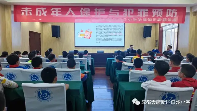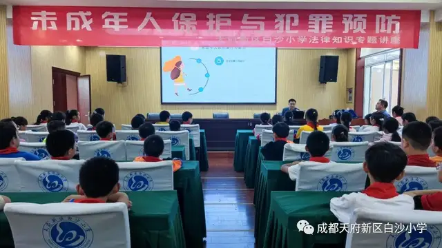 四川行知教育网讯:在中国共产党成立100周年之际,为加强“学党史、感党恩,跟党走”教育学习活动,4月29日,成都天府新区白沙小学特邀四川大学法律硕士、四川炜烨律师事务所党支部纪律委员、律师,四川省经济法律研究会理事向峥荣到校,开展党史教育及“未成年人保护与犯罪预防”专题讲座。聆听讲座的党员代表、少先队员代表共一百余人。