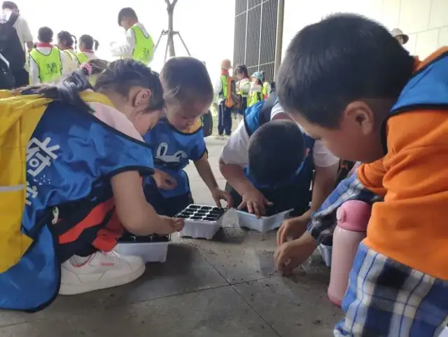 开始种植喽!每个孩子都领到了一套育苗盒,在导师的讲解和帮助下,小心翼翼地埋下种子,种下希望。