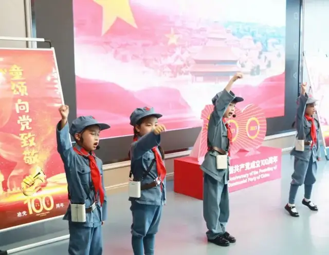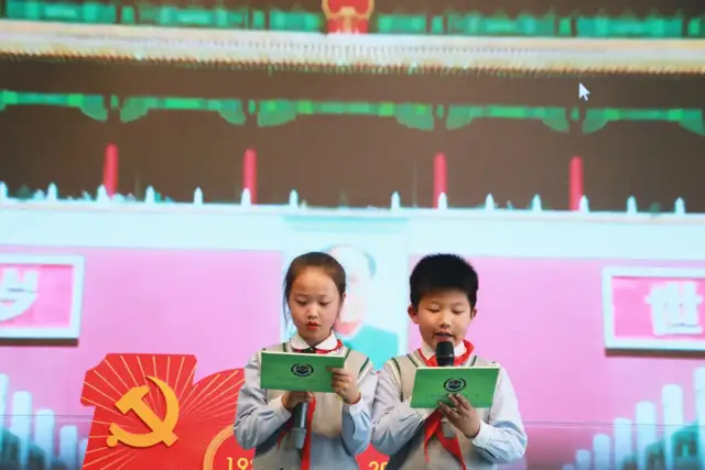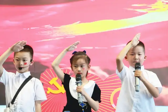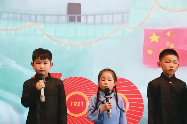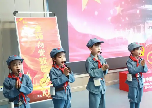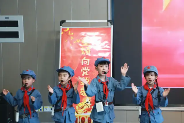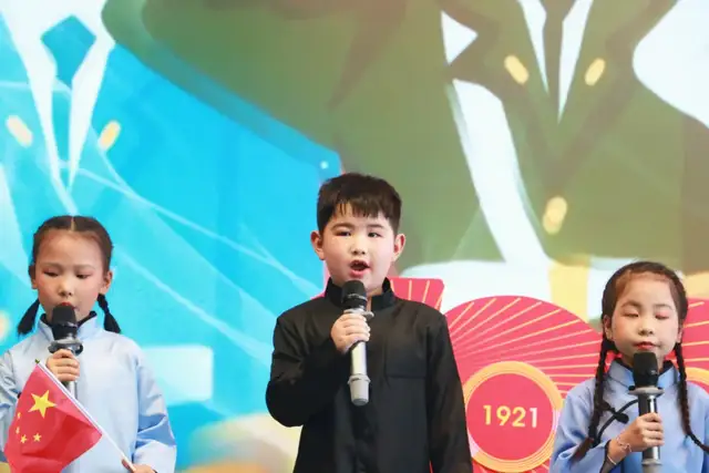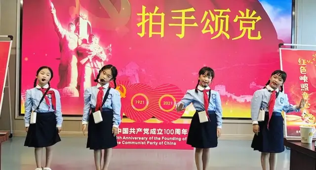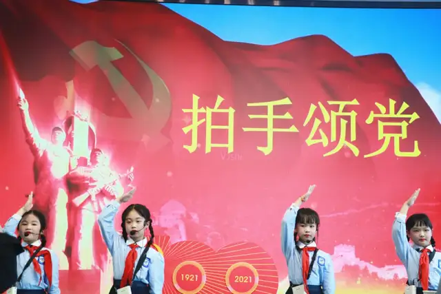 接下来是一年级5班、一年级6班、一年级3班分别为我们带来的《拍手颂党》《党史百年颂》《党啊亲爱的党》