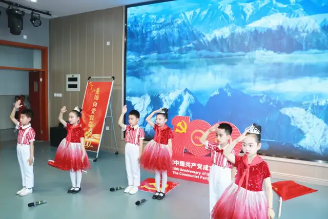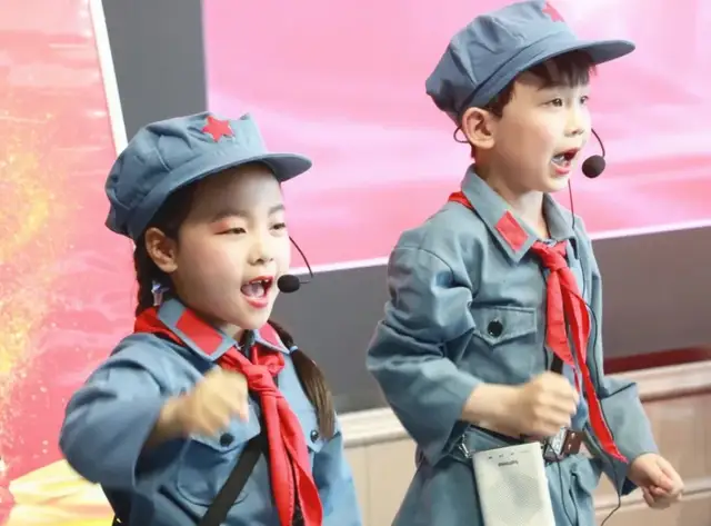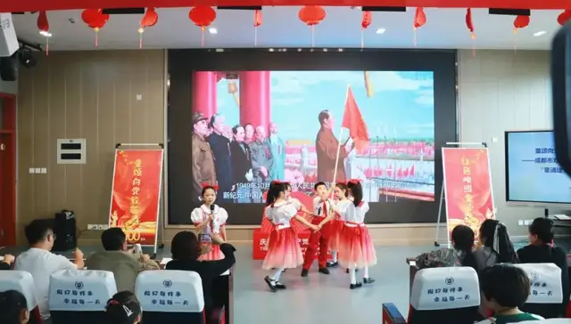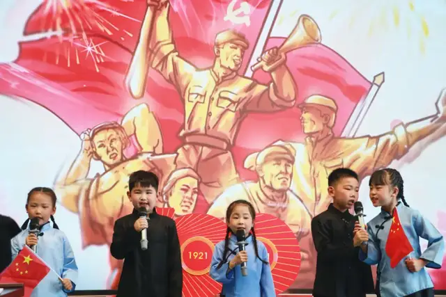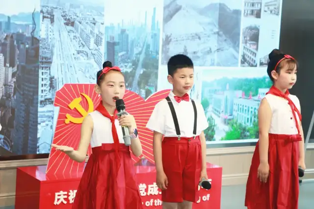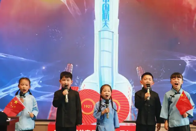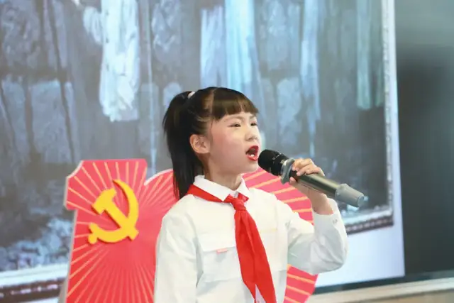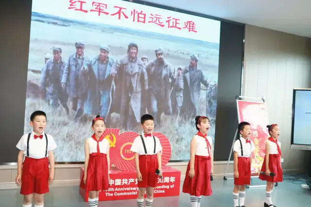 一年级4班的队伍为我们带来的是《党史教育拍手歌》。红船起航南湖里,鲜红党旗高举起,红军上了井冈山,确定领袖在遵义。红军长征二万五,共产党领导打日寇,解放战争获胜利,改革开放变化大,宇宙飞船太空游,党的历史要牢记。