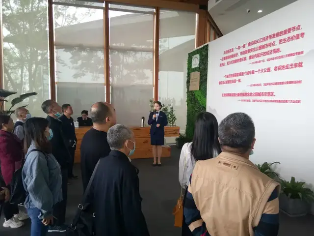 活动第二站是参观天府新区公园城市展示厅。大家观看了天府新区公园城市发展宣传视频;聆听了讲解员对公园城市的发展状况进行的精彩讲解。