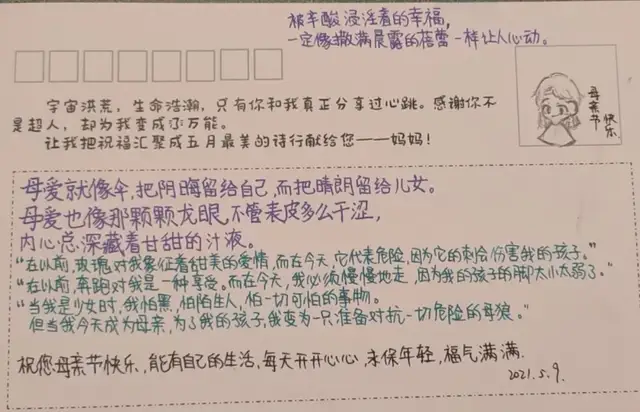把对妈妈的爱诉诸笔端