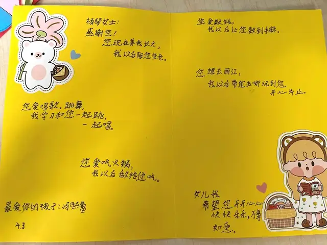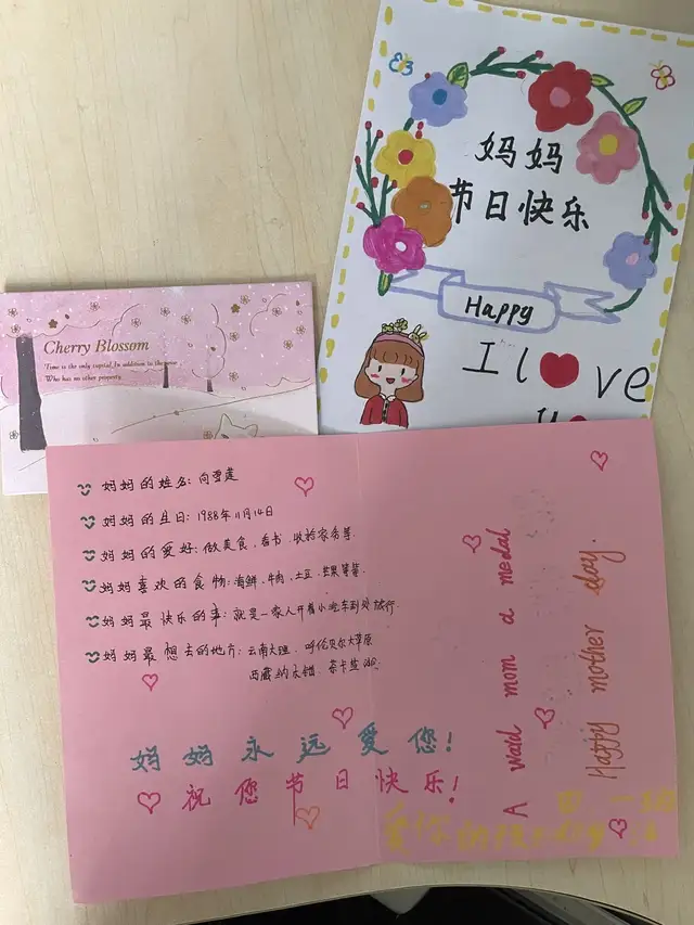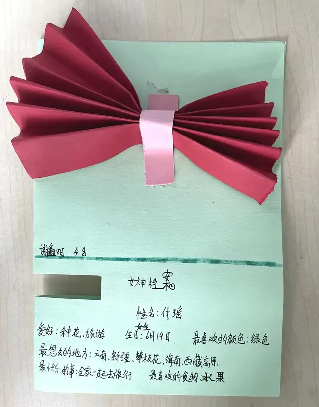 母亲最喜欢吃什么、最喜欢的颜色是什么、崇拜的偶像是谁......这些孩子们都知道吗?在母亲节这天,四到六年级的孩子们亲手制作了精致的“感恩母亲亲情档案”和“女神档案”卡片,送给我们最爱的母亲。