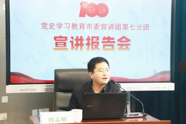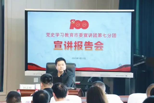 四川行知教育网讯:5月12日下午,区教育系统党史学习教育市委宣讲团第七分团宣讲报告会在成都市双流区实验小学外国语学校5楼学术厅举行。区教育局党建科科长王皓主持本次报告会,市委党史学习教育专家宣讲团成员、四川大学副教授何志明应邀作《学习百年党史,牢记初心使命》专题报告。区教育局党机关干部及双流各学校党委书记、优秀党员100余人参加此次报告会。