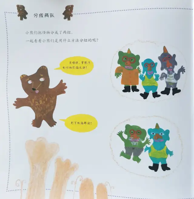 首先由刘志强老师进行数学绘本《小熊一家和吵吵闹闹的怪物们》的说课。刘老师把数学知识渗透在绘本的故事情节中,通过绘本教学渗透数学中复合分类的分类方法。