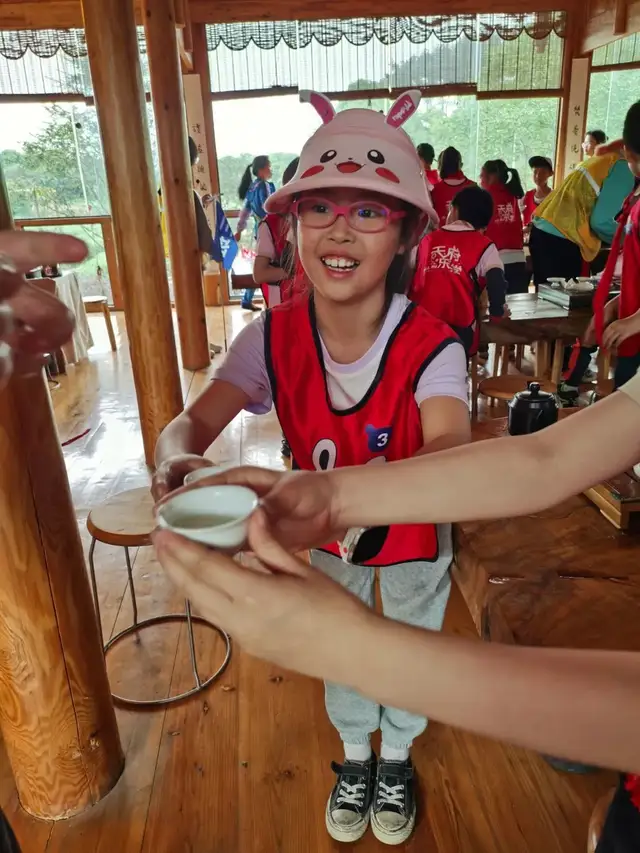 徜徉于碧波万顷的茶山里,欣赏着“山中有林,林间有茶,茶林交错”的特色美景,呼吸着富含有氧离子的新鲜空气,孩子们个个都陶醉了。