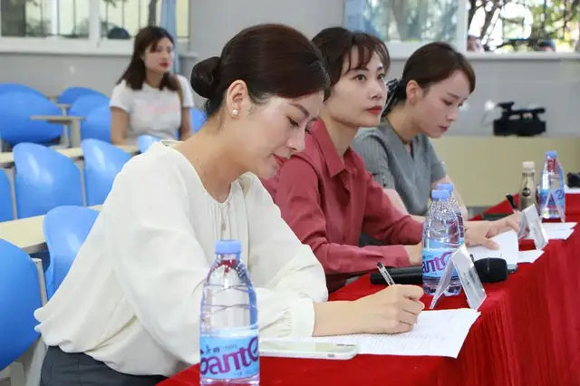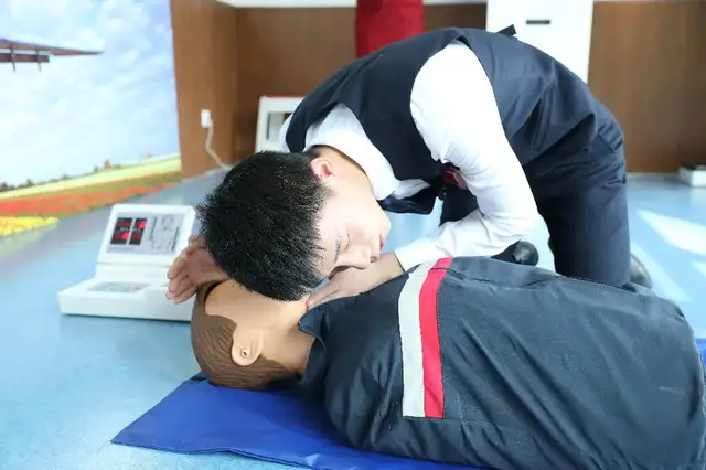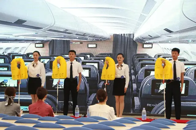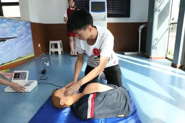 开幕式结束以后,选手们去到各自的比赛场地,按照抽签顺序,依次进行检录,准备比赛。两个赛项同时进行,客舱安全演示比赛项目在阶梯教室进行,心肺复苏比赛项目在安检实训室进行。