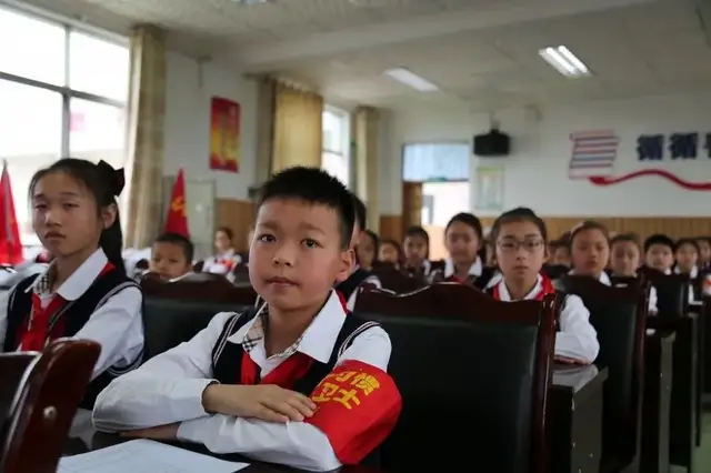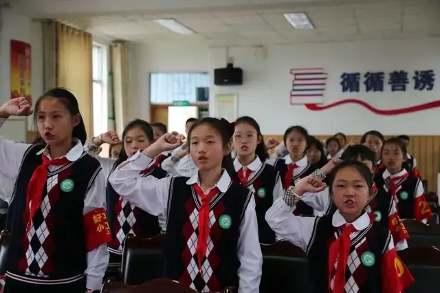 少先队员们紧紧团结在鲜艳的队旗下,向着党旗、团旗迈步前进,他们是祖国的未来,是党团领导下充满活力的后备力量。