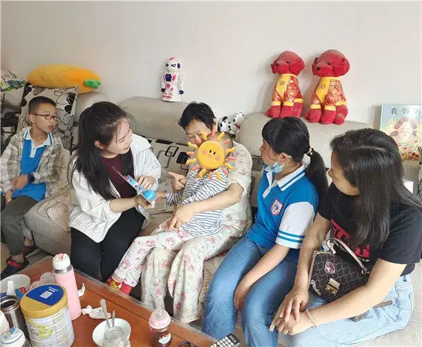 四川行知教育网讯:5月14日下午,在全国助残日来临之际,成都市龙泉驿区航天小学校资源室张老师、四年级三班班主任赖老师、英语吕老师、和三位同学一起去看望小钰同学。