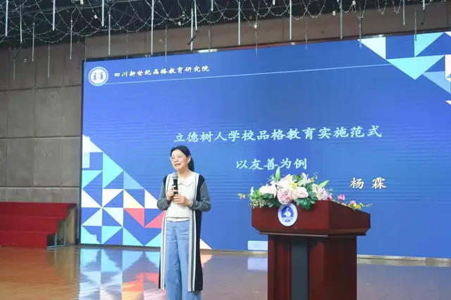 接下来,四川新世纪品格教育研究院杨霖老师作了题为《学校品格教育实施范式——以友善为例》的专题讲座。