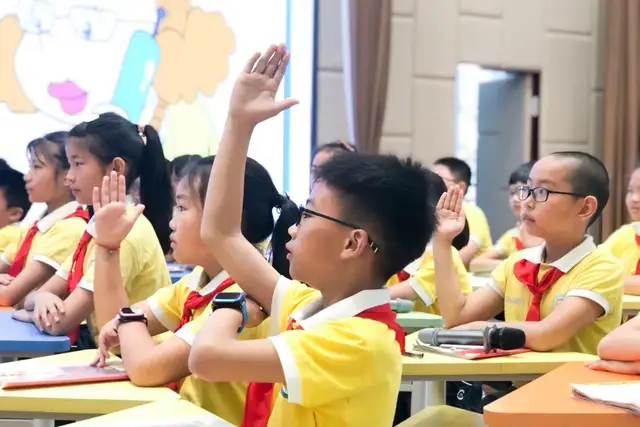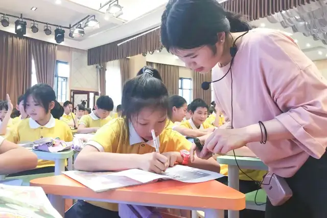 师生之间配合默契,在整节课中,孩子们脸上始终洋溢着自信的微笑。