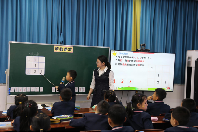 接着,由各区选派优秀教师代表带来“深度学习”课例研讨课。天府新区华阳小学李秀娟老师带来的观摩课六年级《分段计费》;双流区棠湖小学(南区)刘佩老师带来的观摩课一年级《填数游戏》;温江区新世纪外国语学校王佳老师带来的观摩课一年级《填数游戏》;郫都区安靖学校李丹老师带来的观摩课二年级《重复的奥妙》。