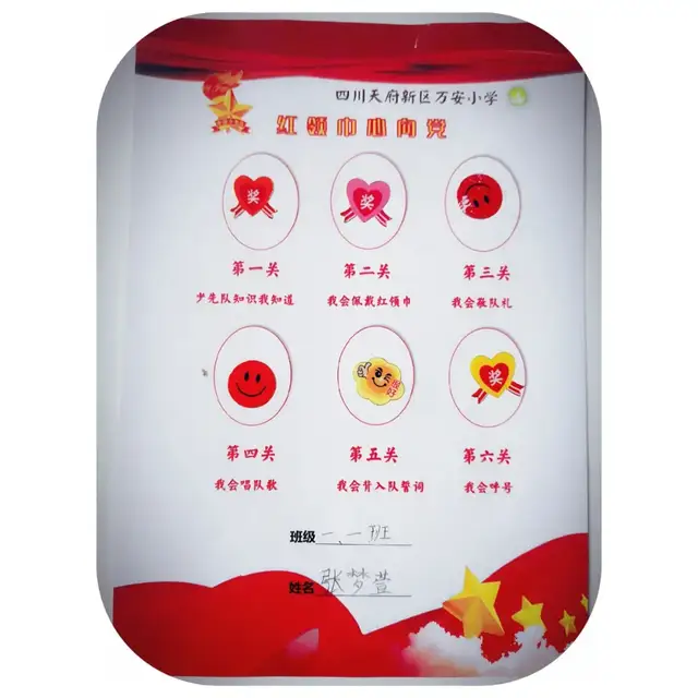 此次大闯关活动共有六关,分别是“少先队知识我知道”、“我会佩戴红领巾”、“我会敬队礼”、“我会背入队誓词”、“我会唱队歌”、“我会呼号”。