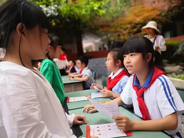 由高年级大队干部组成的“红领巾志愿者”担任各关卡评委。为了让每一个预备队员都能成为合格的少先队员,志愿者们严格把关。