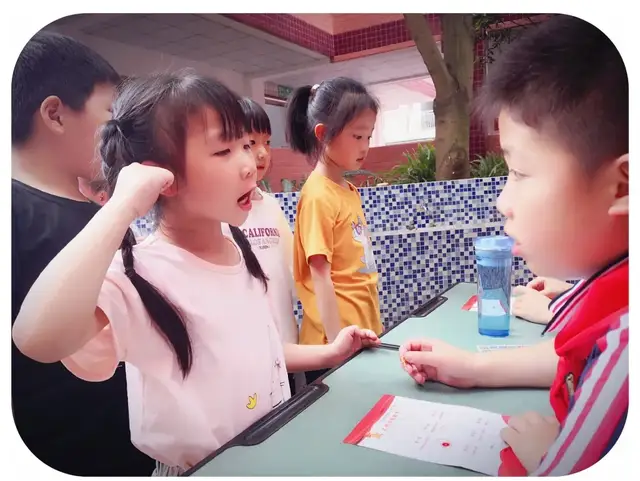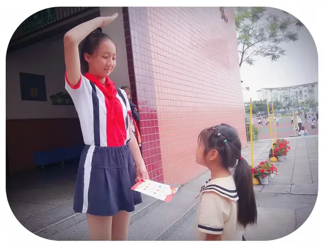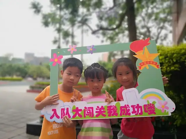 顺利闯关成功的孩子持闯关卡向大队长汇报自己的闯关情况,大队长将祝贺并向他发出加入少先队的邀请。