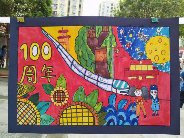 通过本次百人绘画比赛,不仅营造了庆祝建党100周年校园文化环境,展现学生的自我表现能力、审美能力和创造能力,更加坚定了孩子们热爱祖国热爱党的决心和信心。