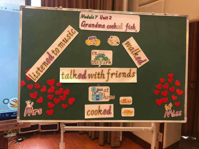 紧接着是由实小东区的王斯馨老师带来的《Module7Unit2 Grandma cooked fish.》,王老师的教学富有艺术性和趣味性。王老师将教学内容巧妙地用一个趣味的小故事串联起来,让孩子们在学习故事的同时,润物细无声地掌握了本课的重难点。在巩固环节,王老师采用了多种游戏的方式,让孩子们在轻松愉悦的课堂中巩固了本课的知识内容。