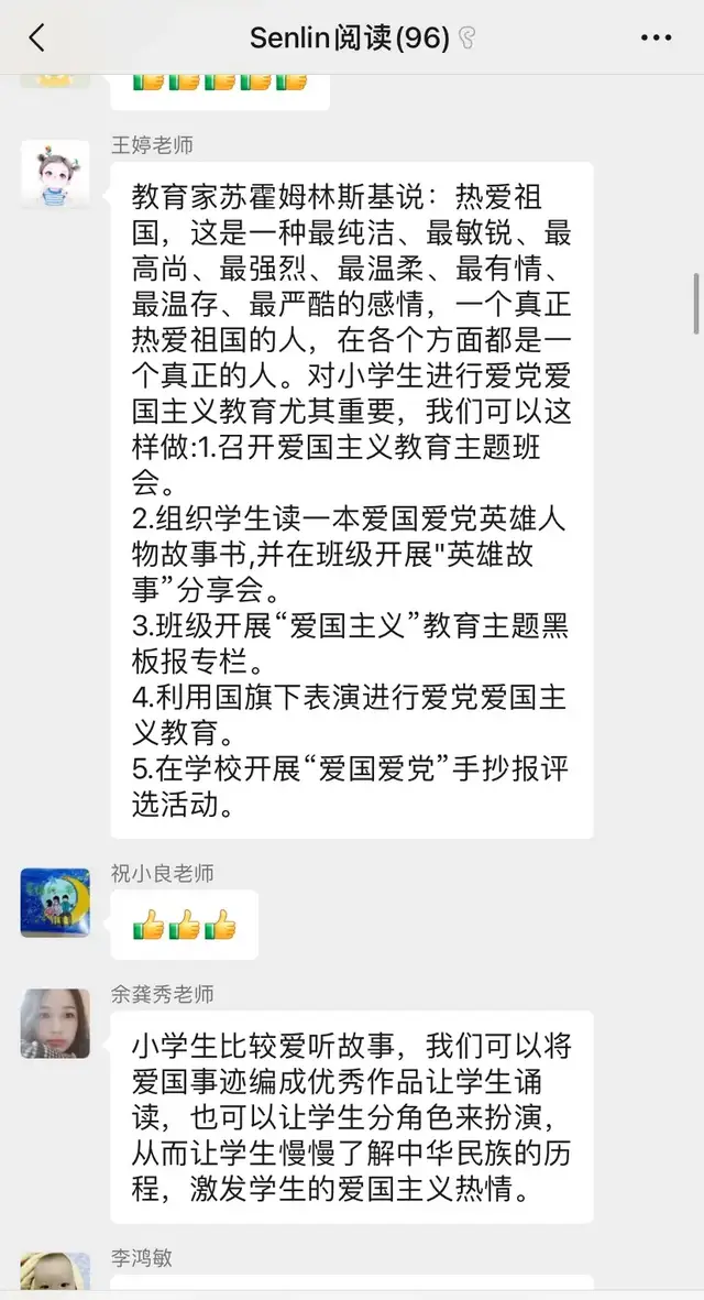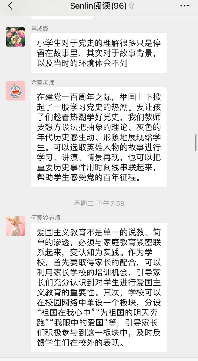四川行知教育网讯:为深入学习贯彻习近平总书记关于“中国梦”、“学党史、学国史”重要讲话精神。5月18日晚上,四川天府新区永兴小学的教师们开展了“如何激发学生学习党史的兴趣,培养学生的爱党爱国情怀”线上阅读沙龙。