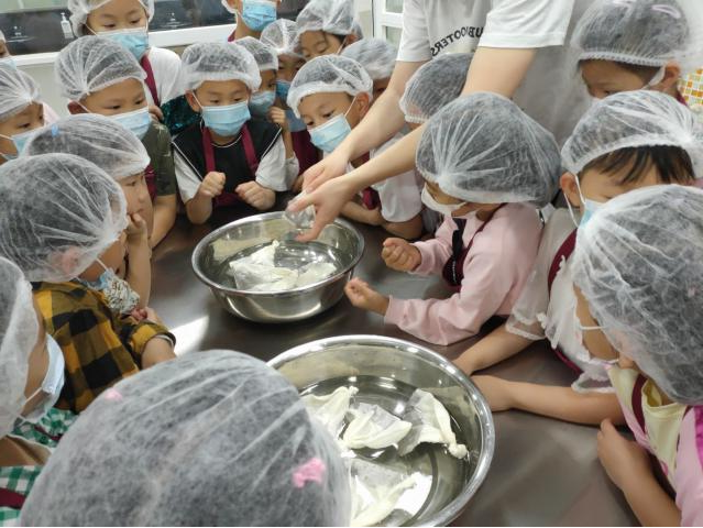 小满过,炎热的夏天就要开始了,怎能少了美味的冰粉儿呢?冰粉儿是四川人夏季喜好的一款特色小吃。小太阳们和老师一起认识冰粉的原料,还知道冰粉原料里含有大量膳食纤维。亲自动手搓、捏、挤,加上食用石灰水搅拌,冰粉就做好了。做好的冰粉儿冷却后加上红糖,再撒上花生碎、山楂碎、西瓜粒等食材,不仅颜色鲜艳,还能能增加饱腹感、降脂、降糖,生津解暑,清凉降火,别提多美味啦!