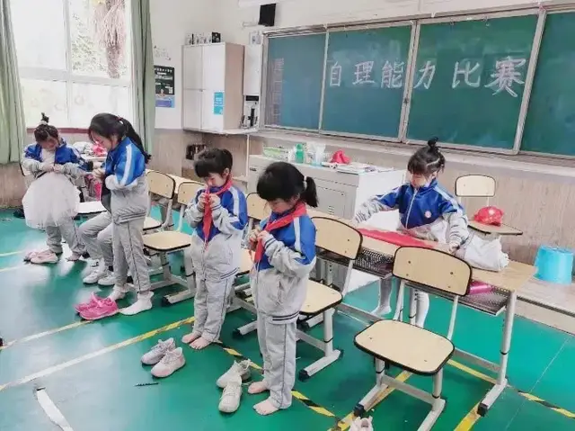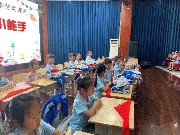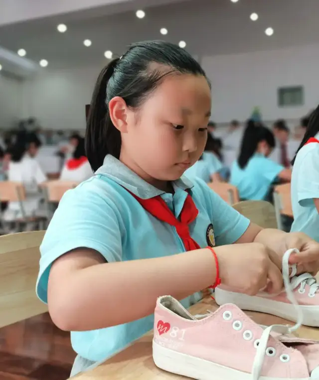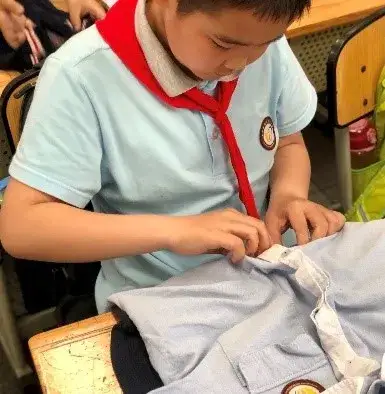 本届生活自理大赛以“我是生活小能手”为主题,比赛活动根据学生年龄特点,结合学生日常生活中应掌握的基本劳动技能共分为六个方面:一年级快速穿衣、二年级整理书包、三年级叠衣服、四年级系鞋带、五年级快速穿针、六年级缝纽扣。