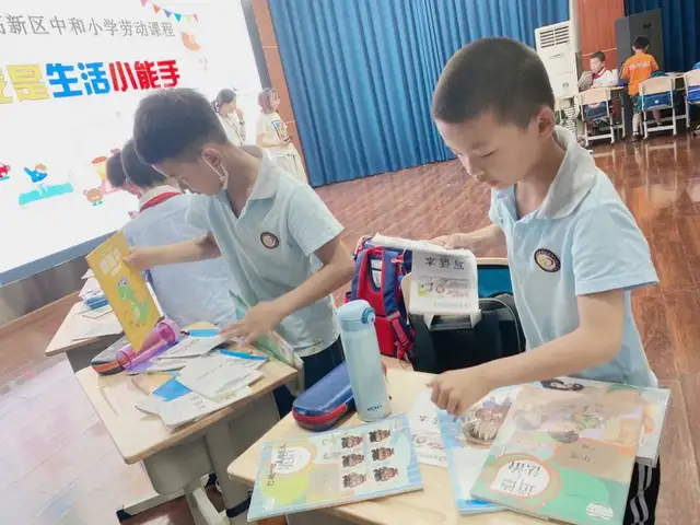 口令一出,孩子们便争分夺秒地开始了书包整理。大书放大包,文具放小包,水杯侧包放,整理有妙招!二年级同学惊人的整理速度和井然有序的摆放赢得现场阵阵掌声。相信经过这次比赛,分类整理的种子将在和美学子的心中生根发芽。