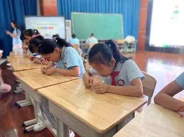 二年级的学生则是在2分钟内整理书包。比赛前,参赛选手的物品已由评委打乱放在桌上。孩子们个个凝神屏息,激动地等待着计时员的开赛口令。