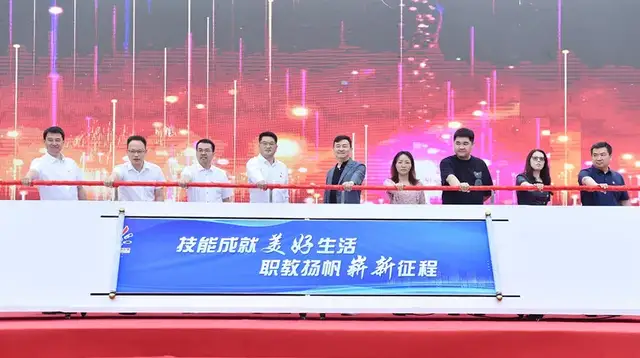 杨远东和与会嘉宾共同推动象征着成功和圆满的卷轴推杆,宣布此次职教活动月正式启动。