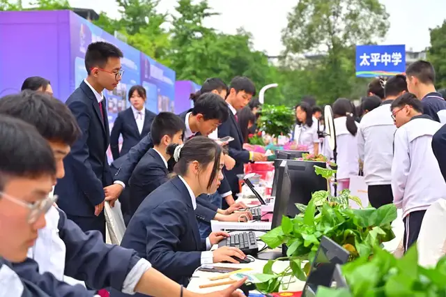 同时,校内外师生、各界代表等还参加了职教成果展和职教体验活动。为了让各位来宾更好地了解职教,感受职教的特色与魅力,天府职校设置了十大展区,展示了专业设备设施、师资情况、专业技能、教学成果等,并设置体验活动,邀请来宾参观、体验、交流。