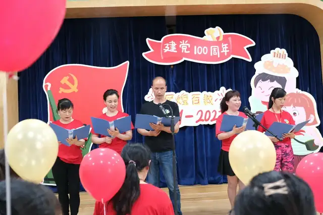 全体教职员工分为五组进行,以抽签形式进行赛唱顺序,每组选择一位人员做为本次活动的评委。活动在主持人的一段回顾建党一百载雄伟壮丽的历程开场白中拉开了序幕,全体职工激情唱响祖国颂歌,献礼党的一百华诞,唱出了对党的热爱及热爱祖国的精神风貌。