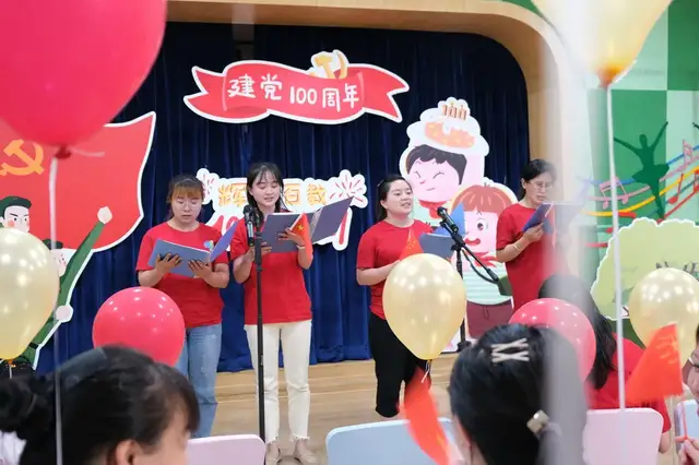 四川行知教育网讯:一首红歌一段历史,一首红歌一面旗帜。为庆祝我国建党100周年,弘扬当代爱国精神,2021年5月20日下午,天府新区华阳幼儿园东区全体教职员工开展了红歌赛唱活动。