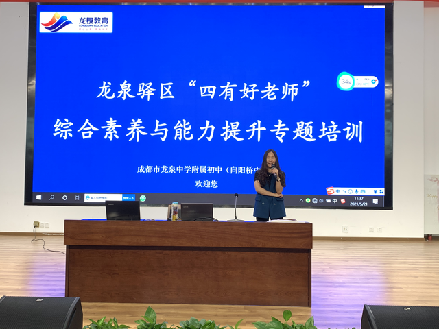四川行知教育网讯:人间五月天,绿意胜繁锦。5月21 日上午,双流区名班主任工作室段旭导师,受龙泉驿区教育科学院邀请,参加龙泉驿区“四有好老师”综合素养与能力提升专题培训,在龙泉驿区向阳中学为全区中小学教师做专题讲座《班级德育课程——让幸福有处可寻》。