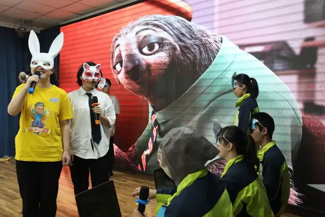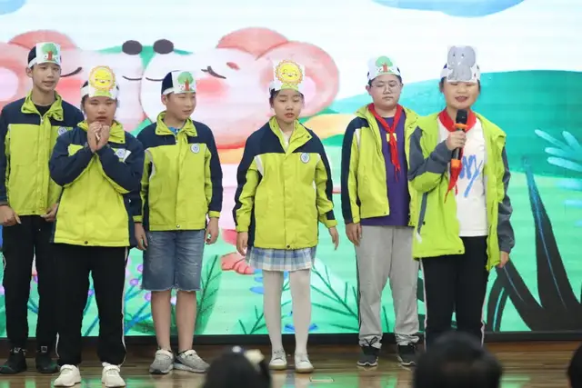 每一个班级都在努力,盲三年级的《课本剧演绎》,盲四年级的《狐假虎威》,盲五年级的《小老鼠历险记》,盲九年级的《疯狂动物城》,普高一的《英式英语VS美式英语》,参与度可是很高的哦,掌声可是连连不断的哦!