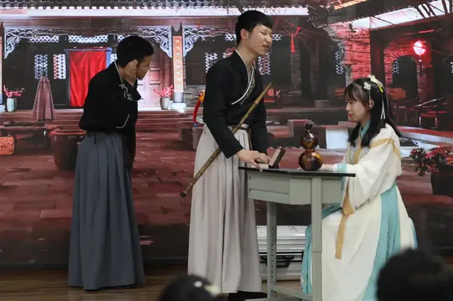 四川行知教育网讯:2021年5月24日,成都市特殊教育学校盲生部举办了英语短剧风采大赛。参加英语戏剧表演的盲生,舞台上自信自如的英语表达,稳健不失活泼的台风,萌动抢眼的戏剧装扮……第一剧目刚开演,就收获了众多掌声和喝彩,如果你好奇台上的同学们为何如此自信,可以告诉你的是,比赛前的用心练习,每天30分钟的口语训练,每周1次的英语二课堂学习,每期固定的英语活动,让他们想不开口都难呢!